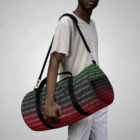 Introducing a stylish and functional duffel bag designed for the modern traveler. This bag features a sleek design adorned with empowering words that embody strength and unity. It’s perfect for gym sessions, weekend trips, or as a chic carry-on. The vibrant design radiates positivity and affirmation, making it an ideal companion for anyone who values style and substance. Whether you're heading to a workout, traveling, or simply running errands, this duffel bag fits seamlessly into your active lifestyle. It’s a fantastic gift for fitness enthusiasts, students, or anyone who loves to make a statement. Celebrate occasions like graduations, holidays, or just a special treat for yourself with this versatile accessory.