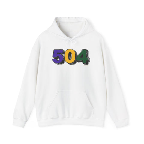 ["504 hoodie","casual streetwear","city area code","everyday sweatshirt","gift for traveler","hooded sweatshirt","local pride hoodie","mardi gras hoodie","New Orleans gift","New Releases","pullover hoodie","purple gold green","seasonal parade wear","unisex hoodie"]