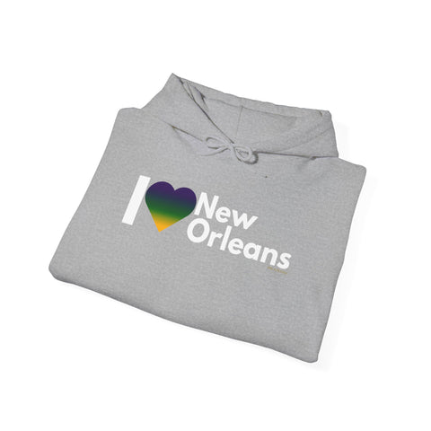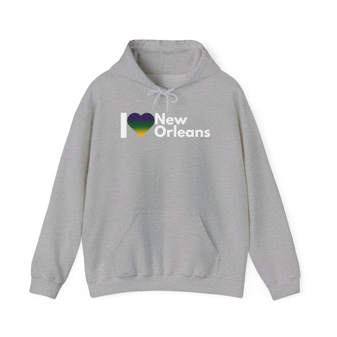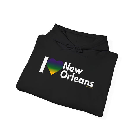 Soft, warm, and unapologetically bold — this hooded sweatshirt celebrates local pride with a bright, textured “I 💜 New Orleans” graphic front and a clean, minimalist back. The slightly oversized pouch pocket and double-lined hood make it a go-to layer for cool evenings or slow mornings. The printed inner neck label and smooth fabric keep things comfortable against your skin. Wear it to show city love, to kick back after a long shift, or to carry a subtle statement while wandering the weekend streets.