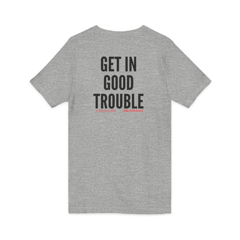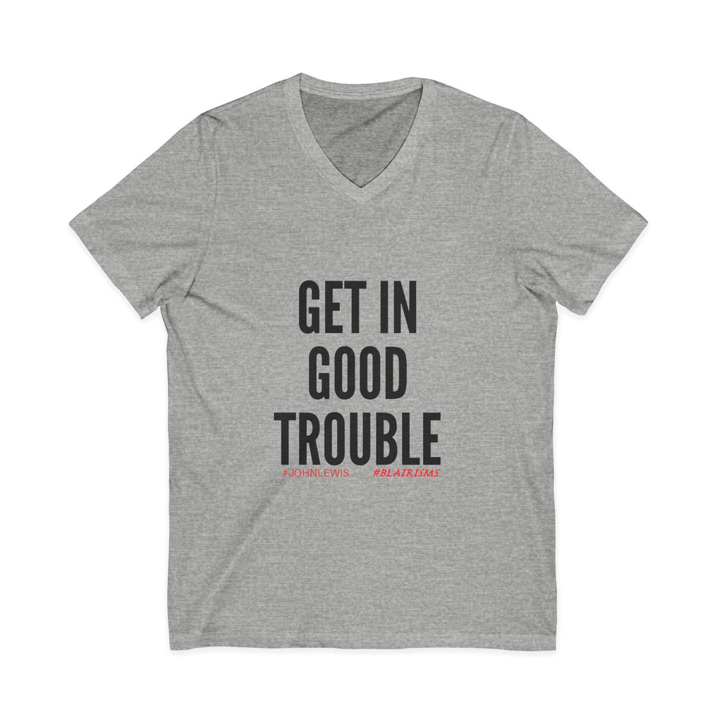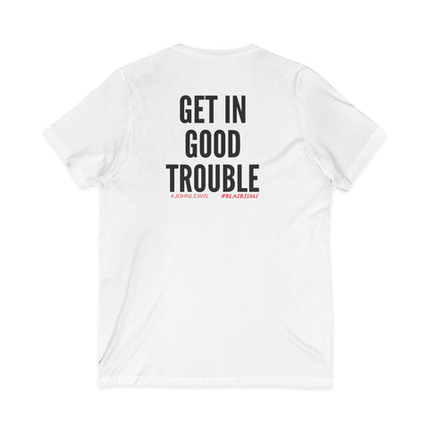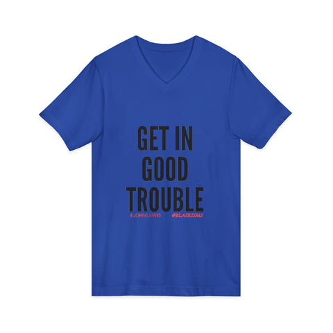 Introducing an eye-catching Unisex Jersey Short Sleeve V-Neck Tee, designed to spark conversations and inspire positivity wherever you go. This shirt carries a powerful message that encourages people to embrace adventure and stand up for what they believe in. Made from soft, lightweight cotton, it offers supreme comfort, making it a perfect fit for any casual outing or semi-formal event. The stylish V-neckline and retail fit ensure you look great while feeling relaxed. Ideal for activists, students, and anyone who values expression, this tee is perfect for wear during holidays like Labor Day, Independence Day, or any day you wish to share your spirit. Elevate your everyday wardrobe and make a statement with this unique tee!