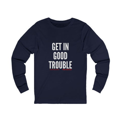 GET IN GOOD TROUBLE - WHITE UNISEX LONG SEEVE T-SHIRT