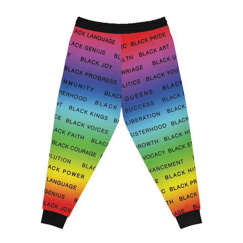 Introducing the perfect blend of comfort and style with these Athletic Joggers. Designed for those who embrace movement and self-expression, these joggers are ideal for a range of activities, from lounging at home to hitting the gym. The vibrant all-over print makes a bold statement, reflecting both individuality and cultural pride. These joggers foster a fun, energetic atmosphere, making them a must-have for anyone who loves to stand out. Perfect for athletes, creatives, or anyone wanting to celebrate their unique identity, these joggers will shine during Black History Month, community events, or just casual everyday wear. Slip into these joggers and feel the joy of freedom and expression!