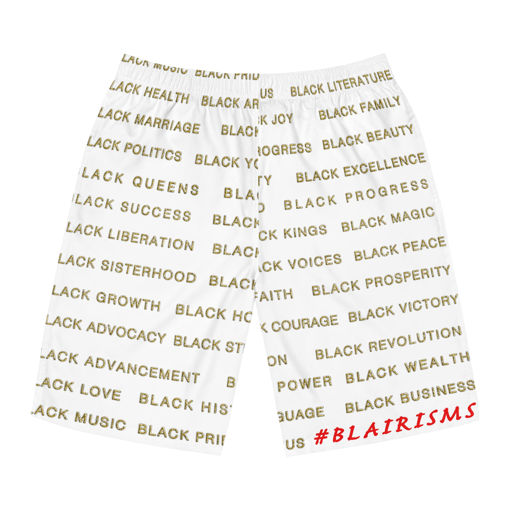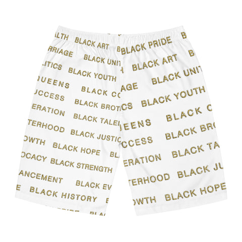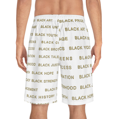 Elevate your beach or poolside vibe with these stylish Men's Board Shorts. Crafted from lightweight polyester, these shorts dry quickly, making them perfect for active outdoor adventures or lounging in the sun. The bold and vibrant prints showcase powerful messages of community, culture, and pride, creating an atmosphere of confidence and celebration. Ideal for anyone who values self-expression, these shorts are perfect for summer outings, family vacations, or just hanging out with friends. Celebrate special occasions such as cookouts, beach parties, and cultural events with a piece that embodies both style and meaning.