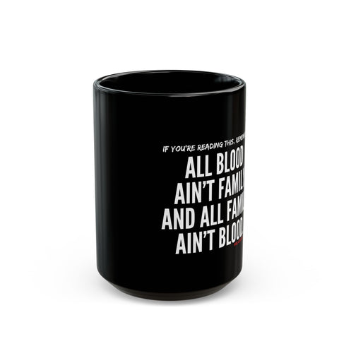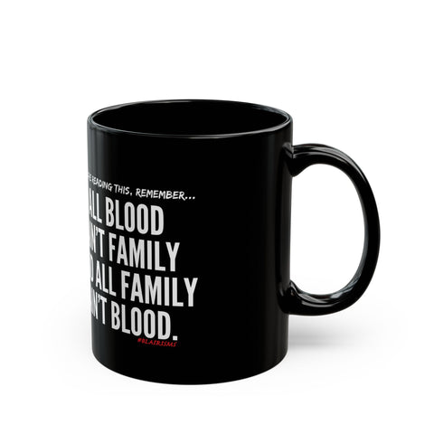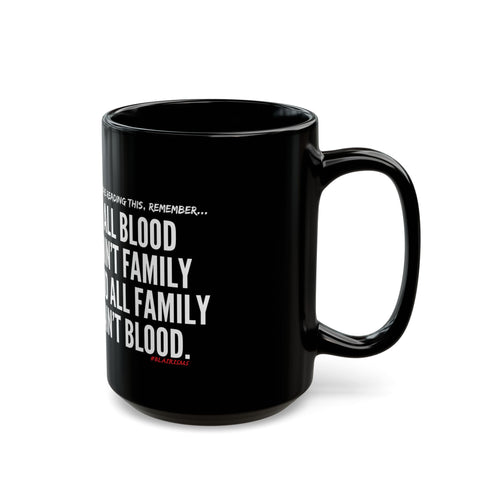 This striking black mug offers more than just a vessel for your favorite beverages; it makes a bold statement in any setting. The glossy ceramic finish not only enhances the vibrant colors of the design but also adds a touch of elegance. Ideal for cozy mornings at home or powerful meetings at the office, this mug lends a confident vibe to your daily rituals. Perfect for coffee lovers, tea enthusiasts, or anyone who values meaningful affirmations, it serves as a great gift for friends, family, or colleagues. This mug is an excellent choice for celebrations such as birthdays, anniversaries, or simply as a thoughtful gesture to show someone you care. Enjoy your drinks while making a statement about family and connection, reminding everyone that relationships go beyond blood ties.