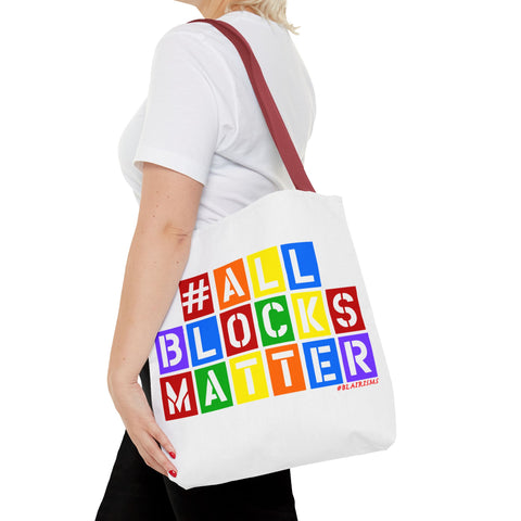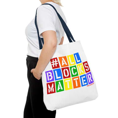 Introduce a splash of color and a statement to your daily errands with this vibrant tote bag. Featuring the bold phrase '#ALL BLOCKS MATTER', this bag not only serves as a practical accessory but also makes a powerful statement. Perfect for carrying groceries, books, or personal items, it’s designed to fit seamlessly into the lifestyles of activists, students, and anyone who values social justice. The durable polyester construction and spacious interior make it ideal for everyday use, whether you're heading to a rally, a casual day out, or a trip to the beach. Celebrate inclusivity and unity every day, making this tote a great gift for birthdays, holidays, or any special occasion that calls for meaningful expression.