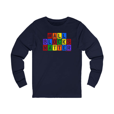 Embrace comfort and style with this Unisex Jersey Long Sleeve Tee, perfect for all occasions! Featuring a bold and playful '#ALLBLOCKSMATTER' design, this tee fosters a sense of community and creativity. Made from soft, high-quality fabric, it feels great against the skin and keeps you feeling relaxed throughout the day. Ideal for parents, educators, and anyone passionate about inclusive messages in a fun way, this shirt can be a great addition to your wardrobe. Wear it during casual outings, family gatherings, or community events. Perfect for holidays such as Back to School season, community awareness days, and casual celebrations that honor diversity and creativity.