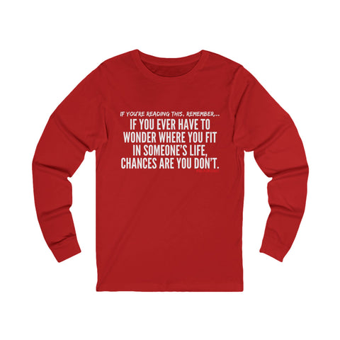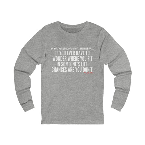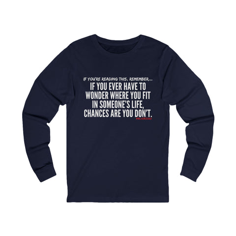 This Unisex Jersey Long Sleeve Tee embodies a unique blend of comfort and style, perfect for anyone seeking a thoughtful statement piece in their wardrobe. The light fabric and retail fit create an easygoing, fashionable look that can be dressed up or down, suitable for both casual outings and cozy nights in. Whether lounging at home or socializing with friends, this tee instills a sense of confidence and individuality. It’s an ideal gift for friends or loved ones who appreciate clever phrases and expressive clothing. This piece is particularly relevant for casual gatherings, birthdays, or even self-care days, making it a versatile addition to any closet.