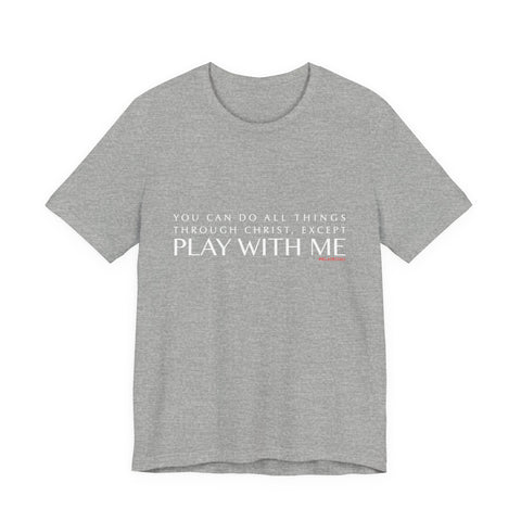 Introducing this stylish Unisex Jersey Short Sleeve Tee, designed for those who embrace humor and faith in their everyday life. This tee exudes a relaxed vibe, perfect for casual outings, gatherings, or cozy nights in. Constructed from 100% Airlume combed and ring-spun cotton, it provides a lightweight, breathable feel, making it ideal for layering or wearing on its own. Whether you're hitting a weekend brunch, celebrating a holiday, or simply lounging at home, this tee adds a playful touch to any outfit. It's a great fit for adults who appreciate a blend of style and comfort, making it an ideal gift for birthdays, casual celebrations, or as a thoughtful gesture during the holiday season. Show off your personality and make a statement with this playful tee that humorously reflects your beliefs!