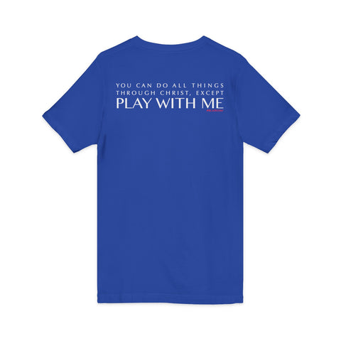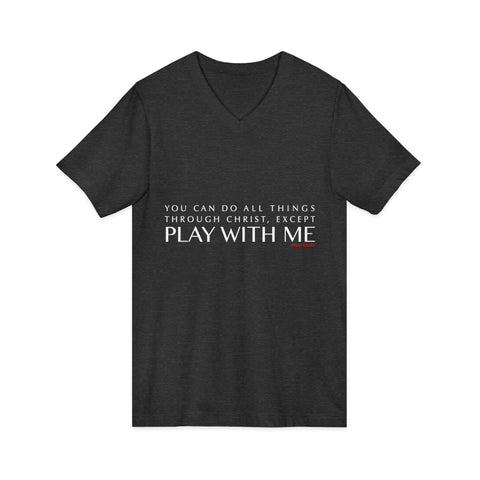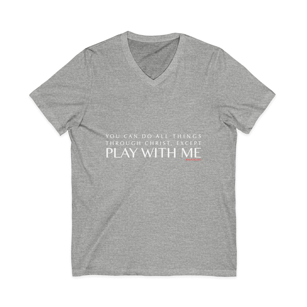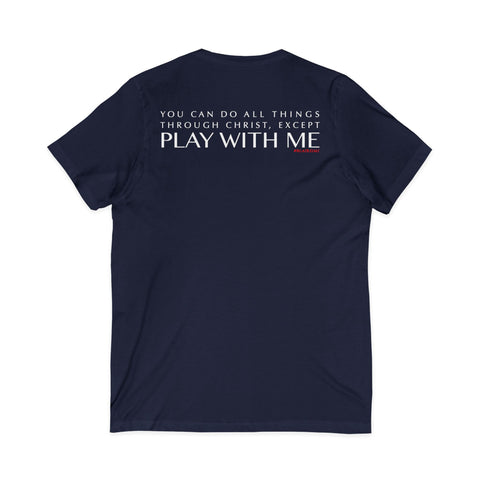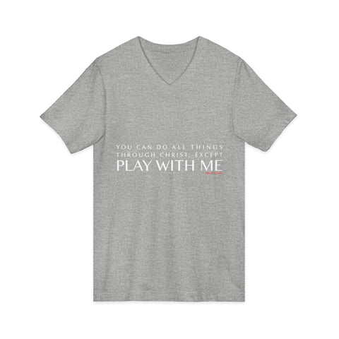 Introducing a versatile Unisex Jersey Short Sleeve V-Neck Tee designed for comfort and style. This lightweight t-shirt, made from 100% cotton, delivers a soft, breathable wearing experience suitable for any season. The trendy V-neckline and retail fit grant a sleek silhouette, making it the perfect choice for both casual outings and semi-formal gatherings. Ideal for adults, this tee resonates with those wanting to express their faith with a humorous twist, making it a great gift for Bible study groups, Christian gatherings, or simply for individuals who appreciate faith-inspired apparel. It’s perfect for holidays like Easter, Christmas, and everyday wear, ensuring you feel stylish while showing your beliefs.